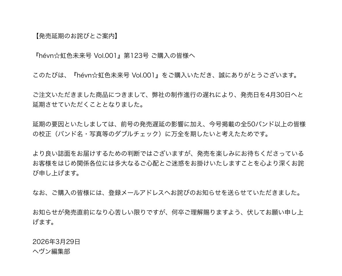 ファンの皆様、ならびに関係者の皆様にはご心配をお掛けいたしますが、何卒ご理解いただけますと幸いです。